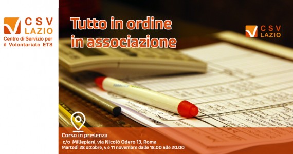 Tutto in ordine in associazione 3 incontri gratuiti in presenza 28 ottobre, 4 e 11 novembre dalle 18 alle 20 Promossi da CSV Lazio >> https://volontariatolazio.it/ Per ulteriori informazioni >> formazione@csvlazio.org A Millepiani, Via Nicolò Odero 13- Roma Ciclo di 3 incontri sui temi legati alla gestione dell’associazione Breve corso che mira a presentare quadro [...]
