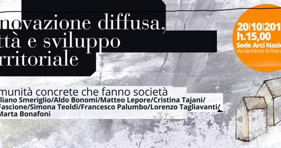 Innovazione diffusa, città e sviluppo territoriale Le comunità concrete che fanno società >> Link all’Evento Facebook 20 ottobre dalle ore 15:00 Sede Arci Nazionale – Via dei Monti di Pietralata, 16 h 15,00 Saluti introduttivi Massimiliano Smeriglio h 15,15 Presentazione lavoro AAster Aldo Bonomi h 15,30-17,00 Pratiche di innovazione diffusa: Roma/Italia Roma L’Alveare che dice [...]